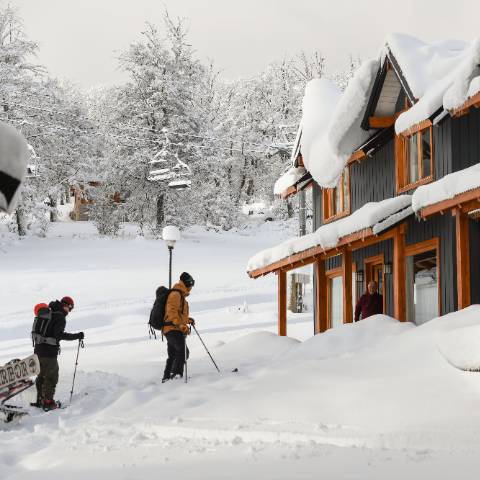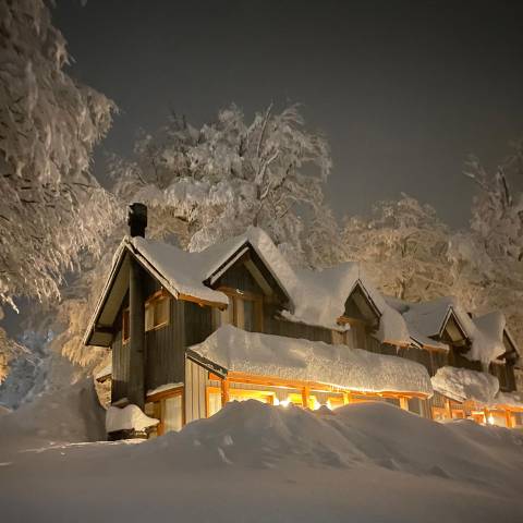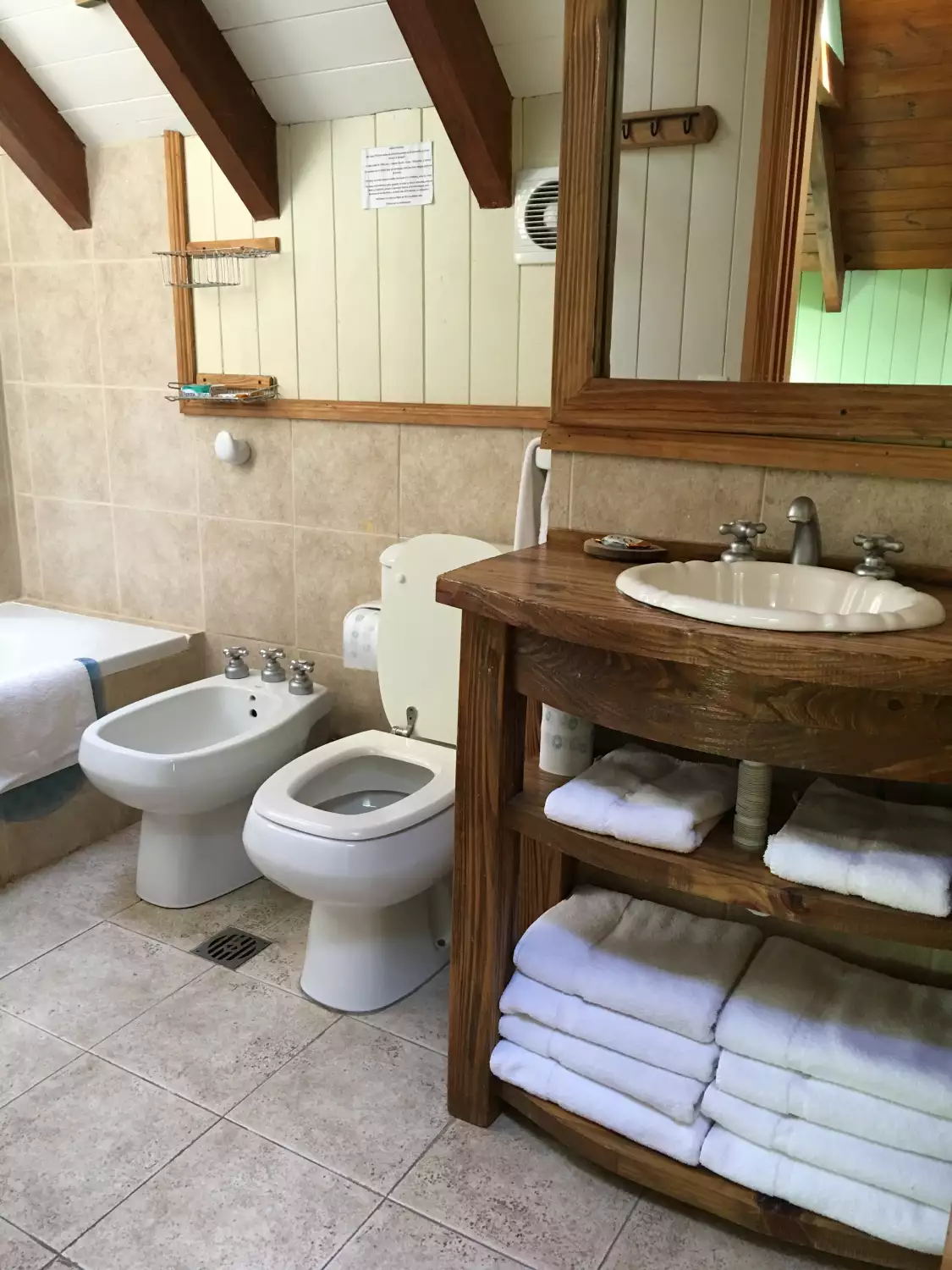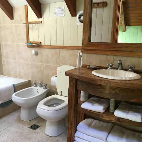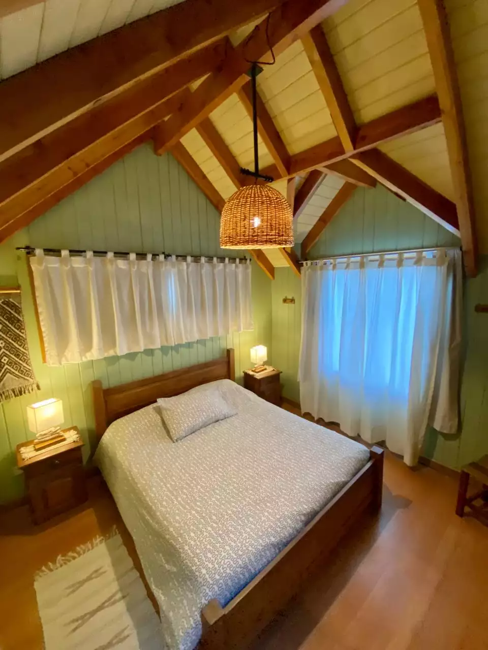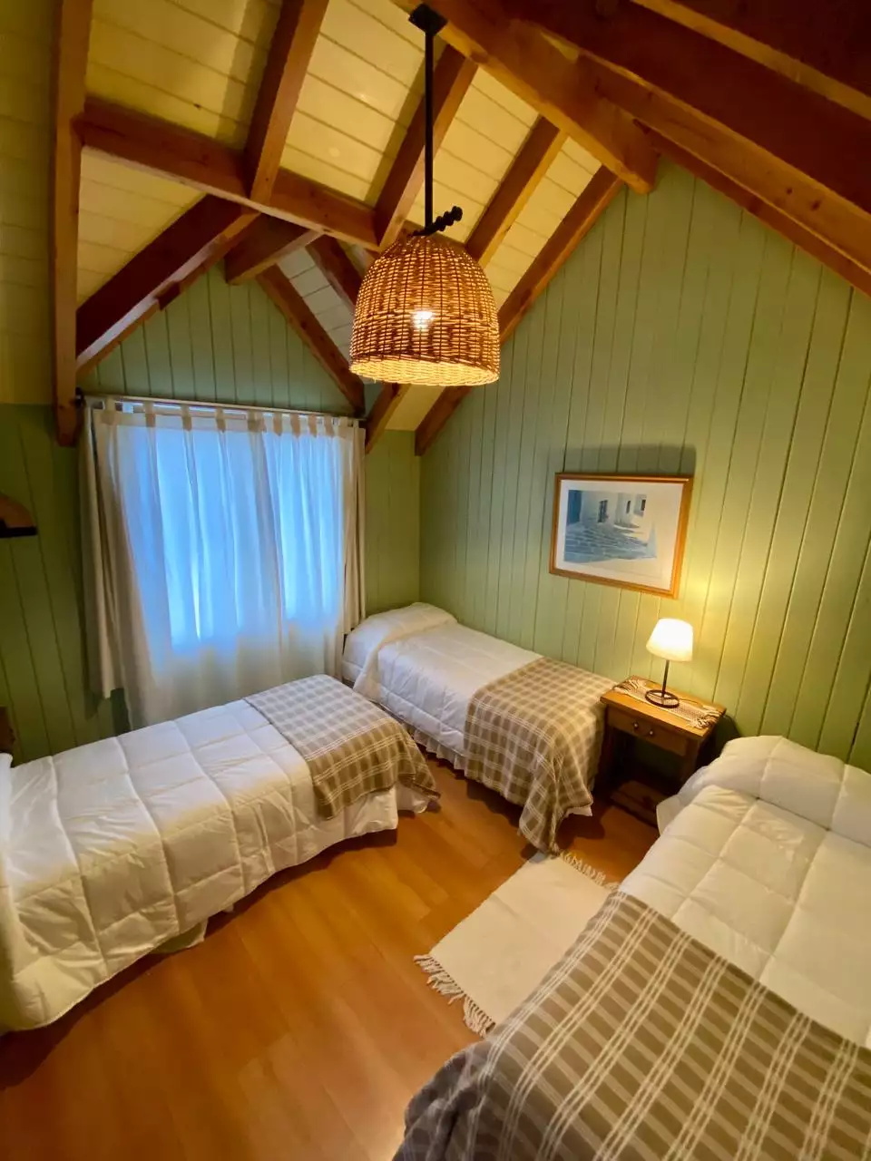 En planta baja, nuestras cabañas ofrecen cocina totalmente equipada, living-comedor integrados con hogar a leña y SmartTV y un baño con ducha. En planta alta, encontrarás un dormitorio matrimonial, un dormitorio con camas individuales o cucheta y un baño completo con bañera.